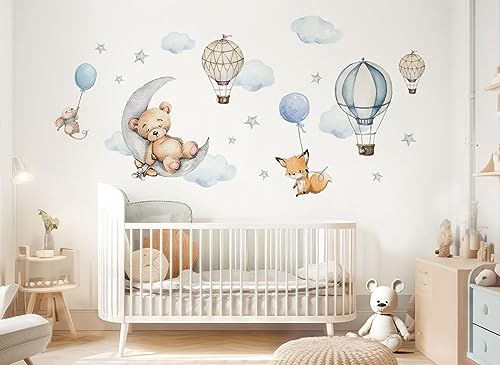 Little Deco Adesivo da parete per cameretta dei bambini, motivo: orsacchiotto sulla luna, adesivo da parete per cameretta dei bambini, adesivo DL850-2