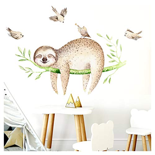 Little Deco DL207-33 - Adesivo da parete per la cameretta dei bambini, motivo: bradipo su ramo e uccellini, 134 x 62 cm (larghezza x altezza)