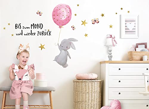 Little Deco DL239 - Adesivo da parete per cameretta dei bambini, con coniglietto e scritta "Bis zum Luna", misura L, 174 x 122 cm (larghezza x altezza), con palloncino rosa