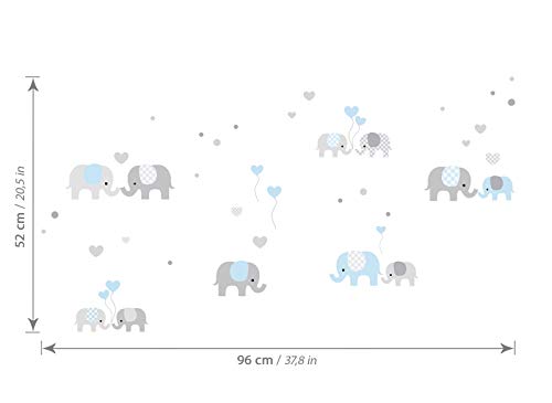 Little Deco DL340 - Adesivo da parete per cameretta dei bambini, motivo: elefanti grigi e blu, due fogli A4