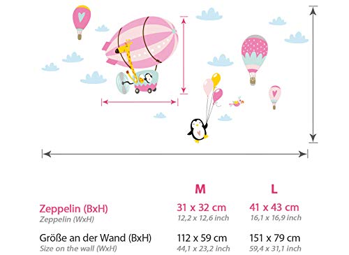 Little Deco DL365 - Adesivo da parete per bambini, motivo: giraffa nel zeppelino, con palloncini, misura M, 112 x 59 cm (larghezza x altezza), colore: Rosa