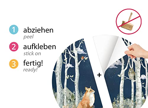 Contenuto della confezione: un adesivo da parete rotondo con volpe di notte nel bosco, il diametro corrisponde a 120 cm.