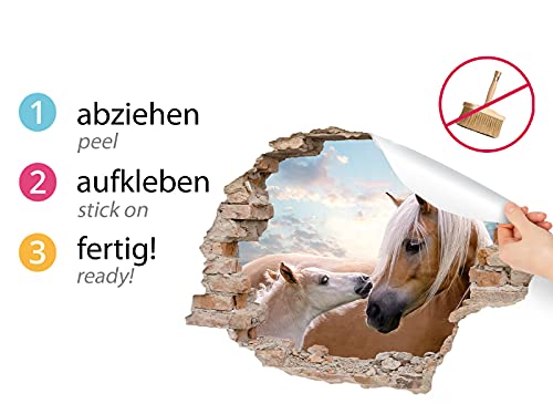 Contenuto della confezione: un adesivo da parete con foro nella parete e con motivo cavalli, l'immagine corrisponde a 67 x 56 cm (larghezza x altezza), con istruzioni e adesivo campione di facile applicazione (lingua italiana non garantita).