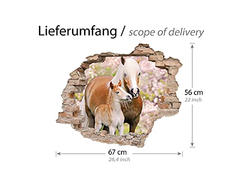 Contenuto della confezione: un adesivo da parete con foro nella parete e con motivo cavalli, l'immagine corrisponde a 67 x 56 cm (larghezza x altezza), con istruzioni e adesivo campione di facile applicazione (lingua italiana non garantita).