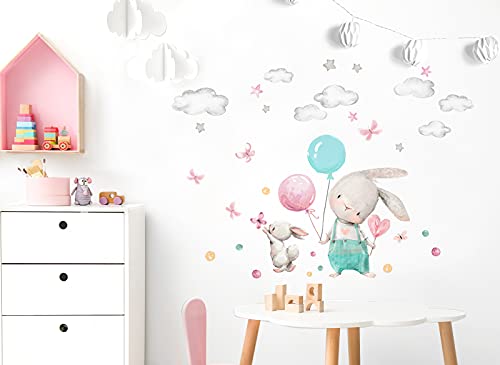 Little Deco DL675 - Adesivo da parete per cameretta dei bambini, motivo: coniglio, nuvole