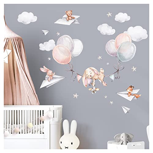 Little Deco DL846-2 - Adesivo da parete per cameretta dei bambini, motivo: coniglietto con palloncini, autoadesivo
