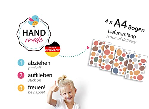Qualità elevata: made in Germany. Gli adesivi sagomati per bambini sono certificati B1 secondo la norma DIN4102, adatti per bambini, per scuole e asili, sono privi di cloro, odori e plastificanti.