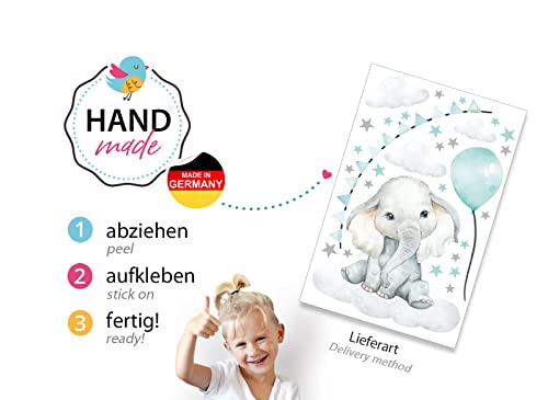 Little Deco Graz Design DL890-2 - Adesivo da parete per cameretta dei bambini, motivo: elefante, palloncino, nuvole, adesivo per la cameretta dei bambini, per la cameretta dei giochi