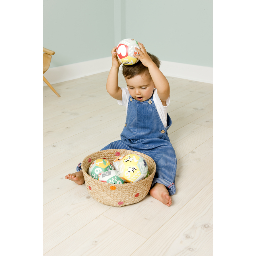 Dettagli del prodotto: Età: da 0 mesi in su Le palline didattiche sono giochi multisensoriali e di apprendimento, disponibili in due divertenti temi: la fattoria e la giungla. I temi degli animali, i numeri e i colori sono un giocattolo perfetto per lo sviluppo La consistenza morbida permette alle manine di afferrare e giocare facilmente, migliorando le capacità motorie e la coordinazione occhio-mano. Include il sonaglio a campana lus tiger Dimensioni e peso: Dimensioni (lunghezza x altezza x larghezza): 9 x 9 x 9 cm Peso: 1,07 kg Materiale e cura: Materiale (esterno): Poliuretano Materiale (interno): Fibra di poliestere