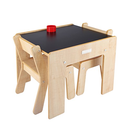 Little Helper FSD02-5 Tavolino con Portamatite e 2 Sedie per Bambini, Legno Naturale/Lavagna