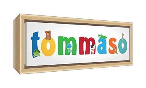 Little Helper LHV-TOMMASO-2159-FCNAT-15IT Stampa su Tela Incorniciata Legno Naturale, Disegno Personalizzabile con Nome da Ragazzi Tommaso, Multicolore, 25 x 63 x 3 cm