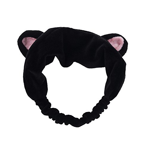Carino orecchie da gatto, fasce in flanella ragazza turbante per capelli nastro Baden Spa Make up cerchietto elastico nero