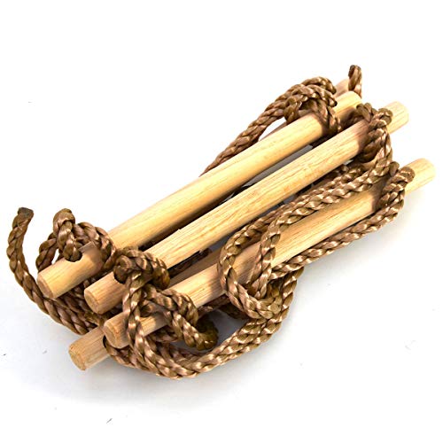 PESO MASSIMO CONSENTITO 100 KG - ogni piolo ha un diametro di ca. 2 cm ed è saldamente legato alla fune fabbricata con fibre di plastica (ca. Ø 1 cm). Ogni gradino è alto ca. 41 cm. Perfetta per arrampicarsi sulla casetta sull'albero