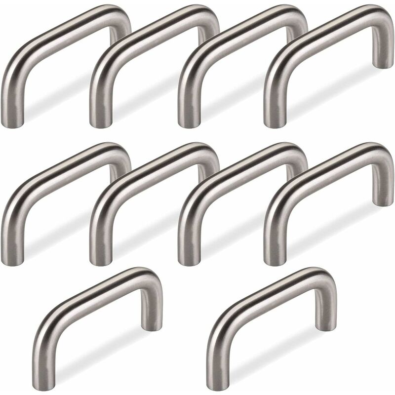 Arco moderno a 10 pezzi con maniglie per mobili dal design senza tempo Prodotto di qualità - finemente prodotto Materiale: VERO ACCIAIO INOX massiccio con superficie spazzolata Lunghezza: 74 mm / Diametro: 10 mm / Altezza: 35 mm / Interasse: 64 mm Fornitura: 10 pezzi di maniglia per mobili incl. Vite di fissaggio M4 Dimensioni: Lunghezza: 74 mm Diametro: 10 mm Altezza: 35 mm Interasse: 64 mm Fornitura: 10 pezzi di maniglia per mobili incl. Vite di fissaggio M4