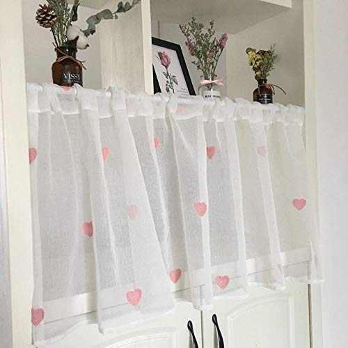 LIUD Tende Finestre a Vetro Bianco Tende Cucina Decorazione a Forma di Cuore Rosa Mantovane per Tende Mezza Tenda Tenda Bistrò Enza Pizzo/con Pizzo