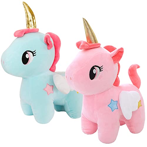 Liuer 2PCS Peluche Unicorno 20 cm Giocattolo Bambola Forma di Unicorno Peluche per Bambini Ragazze Bianco Festa Compleanno Bomboniere Bambini