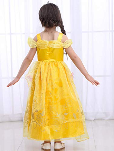 LiUiMiY Bambine Principessa Costume Gonna + Diadema Abito di Gala Ragazze Cosplay Tulle Vestito per Festivo Feste a Tema Halloween Carnevali Compleanni Giallo 2-8anni