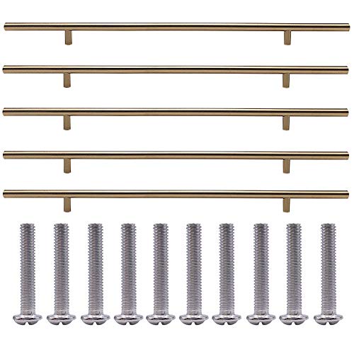 Liujiami Oro Porta Armadietto Maniglia - 5 Pezzi Spazzolato Cassetto Manopole Armadio Maniglia per Guardaroba Cucina Mobili Maniglie 128mm Centri Fori