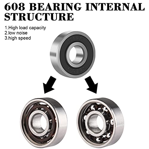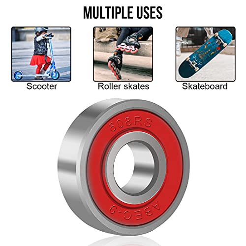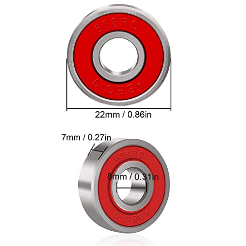LIUJZZJ Cuscinetti del Pattino e Longboard Rullo Cuscinetto da Skate 608 2RS, Doppia Schermati, Rosso e Nero, 8 Pezzi