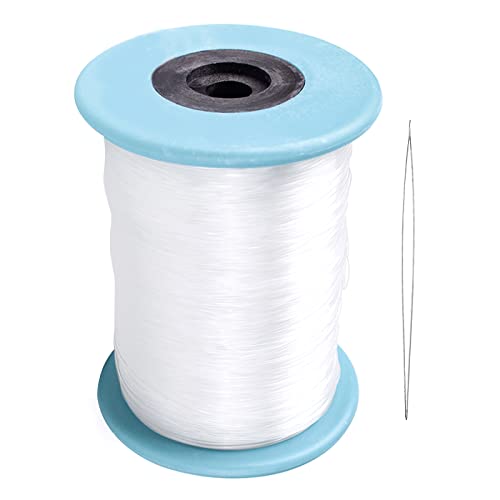 LIUJZZJ 500 m Fil Invisible en Nylon Transparent pour les Ornements Suspendus et Coudre des Passe-Temps, Forts et Invisibles, 0.45 mm, avec Aiguille à Perles