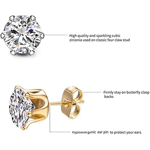 LIUJZZJ 6 Paia Oro Orecchini Donna Set 3-8MM Orecchini Donna Piccoli Orecchini Orecchini Uomo Diamanti Orecchini da Donna Uomo Orecchini Bambina Anallergici