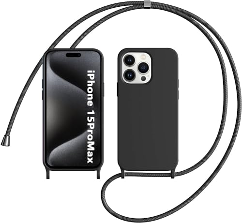 LIUKM Custodia Compatibile con iPhone 15 Pro Max, Custodia da Collo per Smartphone,Cover con Cordoncino da Indossare Cordino Laccio Morbido Silicone Necklace Bumper Case - Nero