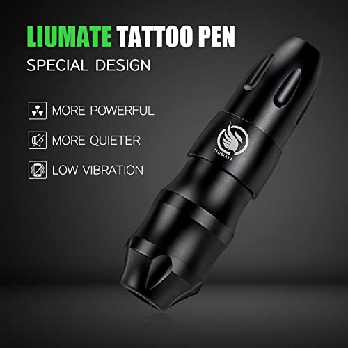 LIUMATE Kit Tatuaggi Wireless Macchinetta del Tatuaggio rotante con 2pcs Batteria Senza Fili 1600mAh 20 pezzi di Cartucce aghi Kit penna per tatuaggi per principianti e tatuatori