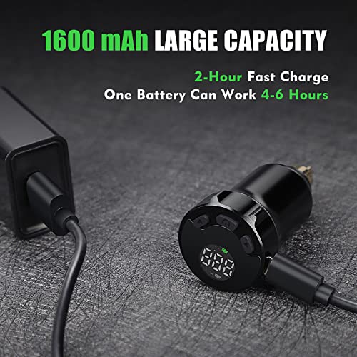 【2pcs Batterie Wireless】La batteria cordless da 1600mAh ha una grande capacità con dimensioni ridotte. Si carica per 2 ore e dura 4-6 ore. Con due batterie, quando una è al lavoro, l'altra può essere ricaricata. Compatibile con tutte le macchinette per tatuaggi rotanti RCA standard. Gli artisti del tatuaggio possono liberarsi del problema del cablaggio della macchinetta e concentrarsi sulla creazione dei tatuaggi.