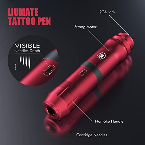 【Amichevole per i principianti】La penna per tatuaggi LIUMATE è progettata per dare la sensazione più vicina alla penna vera e propria, il che la rende più facile da tenere in mano. Questa macchina è dotata di un potente motore che la rende forte e potente, disponibile per l'ombreggiatura e il rivestimento. Il kit per tatuaggi wireless offre la massima libertà di movimento grazie al funzionamento senza fili.