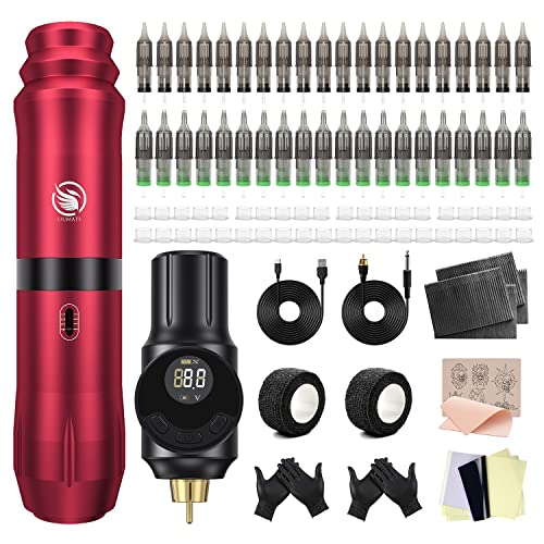 LIUMATE Kit per tatuaggi wireless rotante macchinetta del tatuaggio con alimentatore senza fili 40 pezzi Cartuccia per aghi 40 pezzi Inchiostro Tazze per principianti e tatuatori