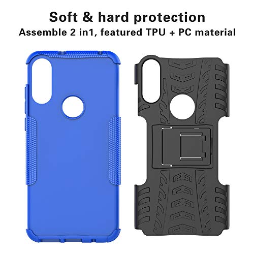 LiuShan Compatibile con Moto E 2020 Custodia,Protettiva Shockproof Rigida Dual Layer Resistente agli Urti con cavalletto Caso per Motorola Moto E 2020 Smartphone(Non per Moto E6),Blu