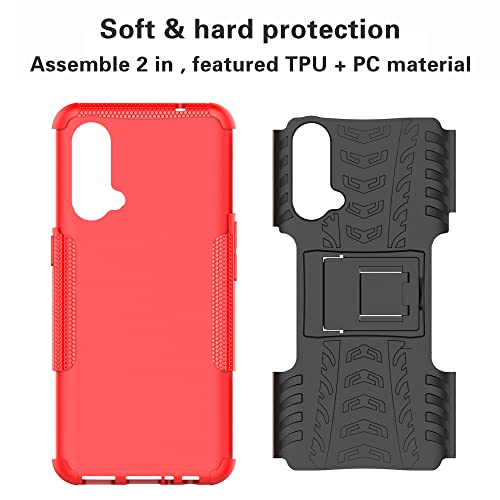 LiuShan Compatibile con OnePlus Nord CE Custodia,Protettiva Shockproof Rigida Dual Layer Resistente agli Urti con cavalletto Caso per OnePlus Nord CE 5G / Nord Core Edition 5G Smartphone,Rosso