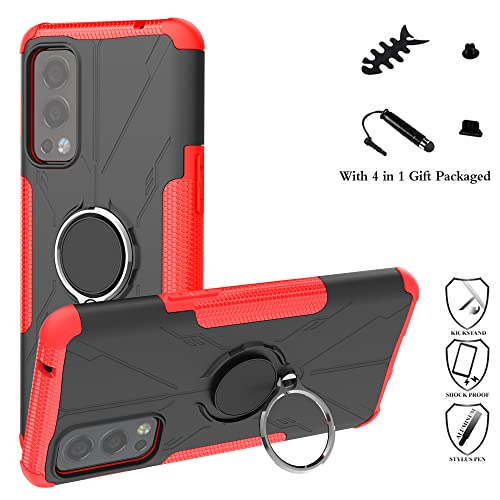 LiuShan Compatibile con OnePlus Nord 2 5G Custodia,TPU Shockproof Cover with 360°Rotating Ring Kickstand, Heavy Duty Armor Bumper Protective Shell per OnePlus Nord 2 5G Smartphone,Rosso