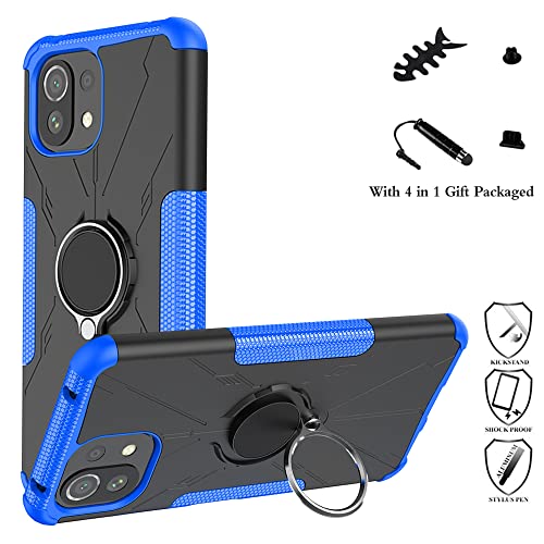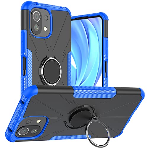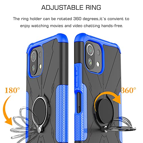 LiuShan Compatibile con Xiaomi Mi 11 Lite Custodia,TPU Shockproof with 360°Rotating Ring Kickstand, Heavy Duty Armor Bumper Protective Shell per Xiaomi Mi 11 Lite (4G/5G condiviso) Smartphone,Blu