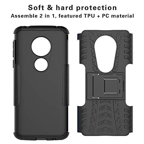 LiuShan Moto E5 / G6 Play Custodia, Protettiva Shockproof Rigida Dual Layer Resistente agli Urti con cavalletto Caso per Motorola Moto E5 / G6 Play Smartphone (con 4in1 Regalo impacchettato),Nero