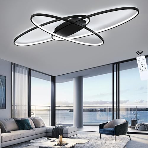 LIUYU Plafoniera led soffitto, Moderno dimmerabile Lampadario soggiorno, Lampadario camera da letto, Disegno Ovale Lampadari Nero 75W, 6700LM, Plafoniera led soffitto moderna Dimensioni L95*W65*H8cm