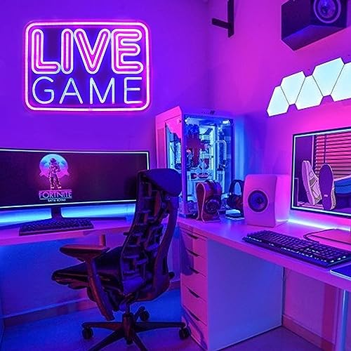 Live Game Neon Scudo LED Live Game Luce Neon Gioco Luce Neon Luce LED Insegna Luminosa Acrilico Parete Neon Sign Luce Notturna Luce Notte Power Lettera per Gaming Zone Decorazione LED Neon Open Sign