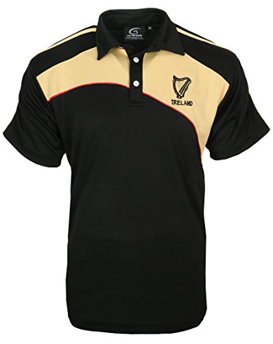 LIVE FOR RUGBY Uomo Manica Corta Irlanda T-Shirt Polo da Golf Arpa - Nero, M
