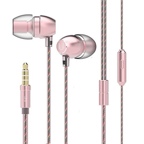 LIVEHITOP UiiSii HM7 cuffie di metallo, Video ad alta microfono auricolari con microfono stereo Bass in-ear per iPhone e Samsung Mobile Phone MP3 PC. (Rosa)