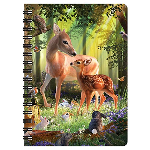 3D LiveLife Quaderno - Cervi all'Alba di Deluxebase. Quadernino A6 Spiralato Lenticolare in 3D a tema Foresta, con fogli bianchi in carta riciclata. Opera d'arte del celebre artista David Penfound