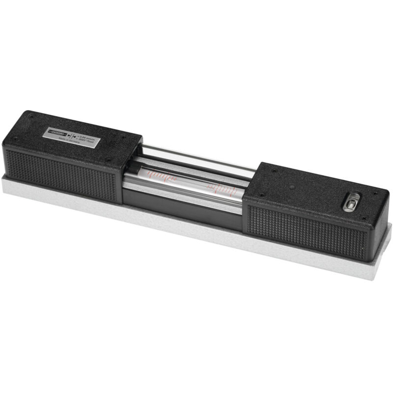 DescrizioneEsecuzione:Corpo robusto in ghisa speciale di elevata qualità, verniciato a effetto martellato. Base prismatica con superfici d'appoggio rettificate (importante per la tracciatura, l'allineamento, ecc.). Superfici di contatto parallele all'asse della bolla. Ognuna con una bolla trasversale e una longitudinale in vetro. Con impugnature isolanti, nonché vetro protettivo sopra la bolla.Il corpo è dotato di un rivestimento di protezione dal calore in grado di contrastare gli effetti del calore generato dalle mani e dalla respirazione. Un incavo di guida presente sul corpo consente la lettura laterale della bolla.Uso:Per allineare superfici, alberi, macchine, ecc.Norma:DIN 877Precisione:1 = con bolla di altissima sensibilità 0,02 mm/m.2 = con bolla di alta sensibilità 0,1 mm/m.4 = con bolla di media sensibilità 0,4 mm/m.Nota:Esecuzione magnetica disponibile su richiesta.Dati tecnici Norma DIN 877 Risoluzione 0,02 mm/m Classe di precisione 1 Fondo lunghezza 250 mm Larghezza base