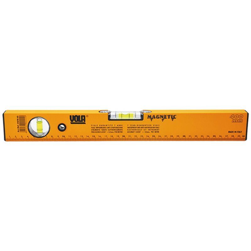 A base magnetica. corpo in profilato d'alluminio verniciato di colore giallo. fiala centrale regolabile con viti. precisione 0,5 mm per 1 metro.cm 50