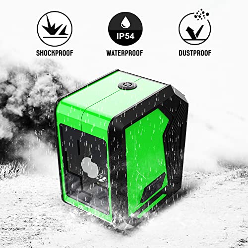 LASER AD ALTA PRECISIONE Il nostro laser verde potente adotta un fulmine verde ultra brillante de 2mm a 15 metros con alta precisión. Proietta una linea orizzontale di 130° e una verticale di 150° per una vasta gamma di applicazioni di livellamento e allineamento. Questo laser autolivellante 360 è anche ideale per la posa di pavimenti, appendere cornici, montare porte, finestre o falegnameria di mobili, appendere la carta da parati, ecc.