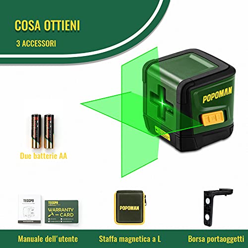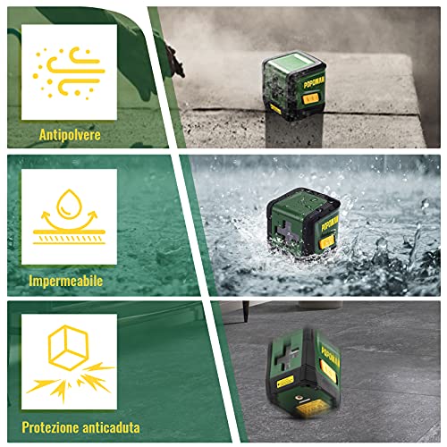 Livella Laser Verde 30M, POPOMAN Livella Laser a Croce, Autolivellante, Borsa per Trasporto, Supporto Magnetico, 360° Rotante, IP54 - TPLL01D