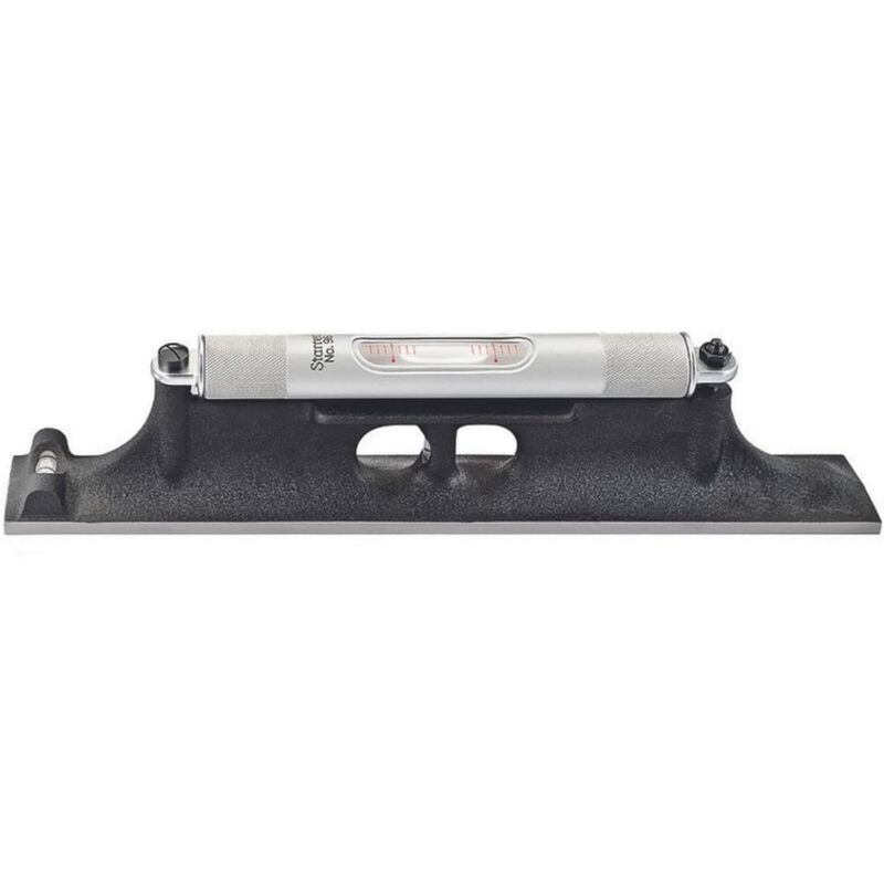 La livella per macchinisti di precisione Starrett 98-12 è una livella a bolla lunga 12 pollici con una fiala principale graduata che ha una sensibilità di 0,42 mm / mo da 80 a 90 secondi per determinare il piano orizzontale, una fiala di prova incrociata che consente il livellamento simultaneo due direzioni e una fiala a piombo per determinare il piano verticale. La fiala principale è regolabile su un'impostazione positiva per risultati accurati, è realizzata in fiala di vetro smerigliato che resiste ai graffi per fornire letture chiare ed è alloggiata in un tubo di ottone con chiusura a frizione per resistere alla rottura. Una scanalatura a forma di V lungo la base fornisce un posizionamento affidabile durante il livellamento di elementi rotondi come tubi, condotti e alberi. La livella ha una base in ghisa per una maggiore durata. I livelli sono utilizzati nell'edilizia, ingegneria, rilevamento e lavorazione dei metalli, tra le altre applicazioni. I livelli sono strumenti che