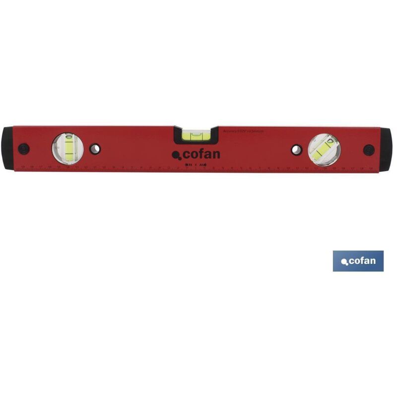 Livella in alluminio con scala graduata, tre bolle di livellamento. Lunghezza da 300mm a 1000mm. Caratteristiche tecniche: Lunghezza [mm]: 400 mm