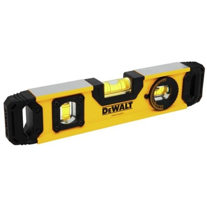 Livella Torpedo DeWALT DWHT0-43003 - Bottiglia centrale ingrandita per una migliore leggibilità - Fiala rotante per misurazioni angolari specifiche - Guscio in ABS che protegge la bottiglia se il livello scende e garantisce il mantenimento della precisione - Superficie inferiore fresata per garantire una finitura uniforme e la massima precisione - Fori per appendere ad entrambe le estremità del livello