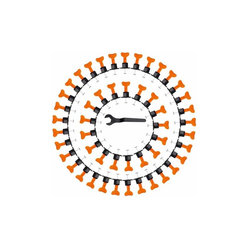 Risparmia tempo: mantieni perfettamente la planarità tra le piastrelle per evitare irregolarità ed evitare che le piastrelle si muovano durante l'asciugatura, riducendo la necessità di levigatura e lucidatura. Strumento ideale per la costruzione di pavimenti e pareti. Riutilizzabile: riciclarlo prima che il cemento o l'adesivo per piastrelle sia completamente asciutto, in genere non più di 6 ore, pulito e asciutto per il riutilizzo. Il perno a T può essere sostituito se deformato o danneggiato, senza preoccupazioni e risparmiando denaro. Durevole e robusto: il corpo principale di ogni livellatore per piastrelle è realizzato in materiale PP di protezione ambientale di alta qualità, il perno a T è realizzato in acciaio al manganese, resistente all'usura, agli urti e all'elevata compressione. Facile da usare: l'impugnatura a coda di pesce dal design ergonomico ha graffi antiscivolo, dotata di una chiave nazionale professionale da 21-22 mm, che è conveniente ed economico da usare. Kit di