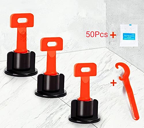 50 pz Livellatrice perPiastrelle Riutilizzabile PiastrelleSet di Livellamento Con Chiave Speciale Ago acciaio Sostituibile+500pz Croci,Ceramica Pavimento Sistema Distanziatore,Cunei Livello Piastrella