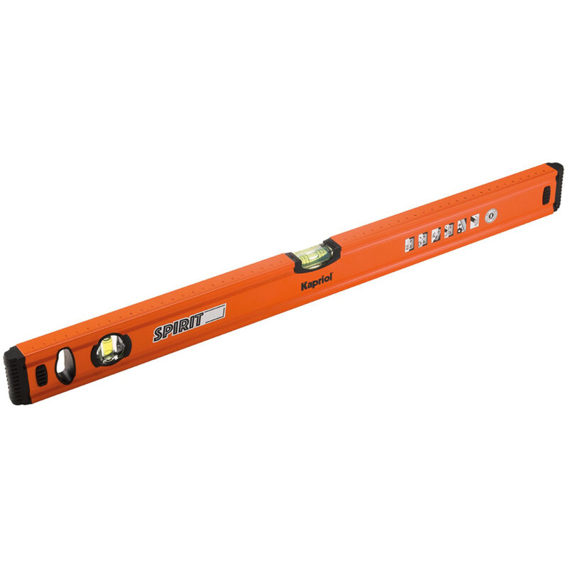 80 cm e 2 bolle. Livello spirit Kapriol 80 cm Con robusta struttura in alluminio e tappi in plastica ad elevato assorbimento di urti. Precisione: 0,55 mm/m=0,029°. 80 cm e 2 bolle.